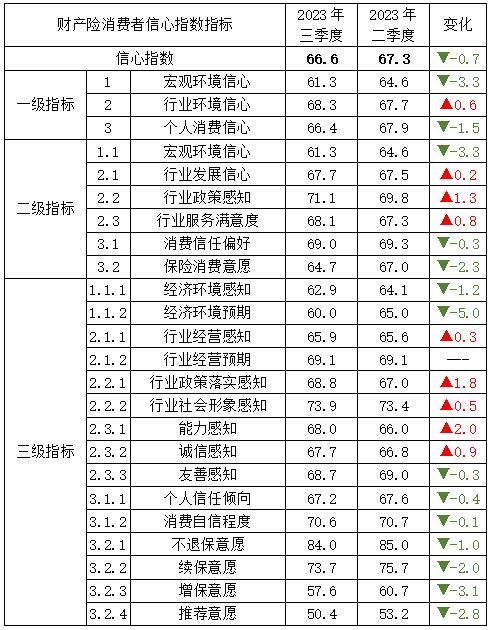 【指数成果】2023年三季度中国保险消费者信心指数66.9
